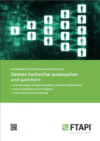 Der neue Leitfaden von FTAPI® beschäftigt sich mit den wesentlichen Risiken, die Unternehmen beim Dateiaustauch mit gängigen Filesharing Systemen eingehen und leitet daraus Anforderungen an eine sichere und effiziente Datenraum Lösung ab. Darüber hinaus werden verschiedene Stufen der Verschlüsselung - insbesondere die Ende-zu-Ende Verschlüsselung in Verbindung mit der Segmentierung von Dateien - vorgestellt, um IT-Verantwortliche und das Management bei Auswahl und Einführung eines geeigneten Systems zu unterstützen.