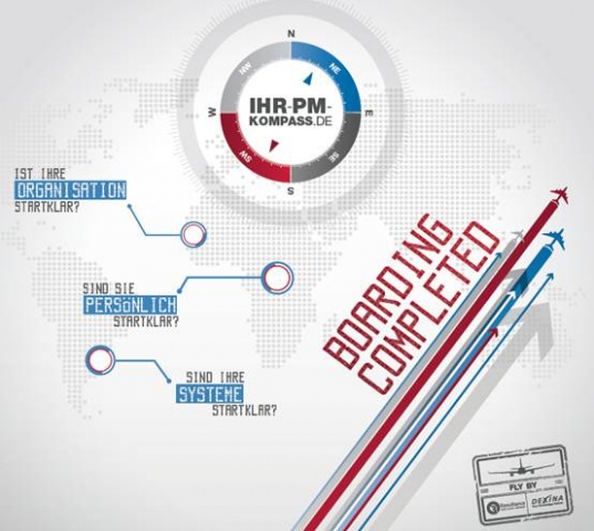 Am PMO Tag, der 2012 zum zweiten Mal stattfindet und sich bereits als marktführender Treff für Project Management Office Leiter positioniert hat, können sich die PM-Experten am Kooperationsstand "IHR-PM-KOMPASS.de" über den umfassenden Beratungsansatz der DEXINA AG und Resultance GmbH informieren. Zudem ist der gesamte PM-Prozess - ebenfalls anschaulich als Flughafen-Check-in dargestellt - auf der Homepage www.ihr-pm-kompass.de zusammengefasst.
