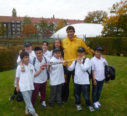 Hockey-Star anschließend mit Fragen - einen Weltmeister und