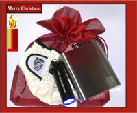 GOLFBALL-UHU WEIHNACHTSPAKET (1x Golfball-Uhu Ballfinder, 1 x Golfhandschuh, 1 x Edelstahl Flachmann) zum Aktionspreis von