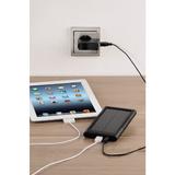 Die Powerbank speichert bis zu 6000 mAh. Verschiedene Anschlüsse wie Micro USB, USB-A und ein 30-Pin-Stecker für Apple-Geräte sind bereits in der Powerbank eingebaut. Für alle Endgeräte, die einen speziellen Lade-Anschluss benötigen, ist eine USB-A Buchse integriert, an die die spezifischen Ladekabel angeschlossen werden können. Da Smartphones, Tablets und mp3-Player unterschiedliche Stromversorgung benötigen, erkennt die Powerbank die angeschlossenen Geräte automatisch und passt die Ladeparameter entsprechend an.