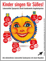 (IINews) - Wer nicht vorbereitet ist, erntet enttäuschte Blicke. Im November ziehen die Kinder mit ihren bunten Laternen wieder von Haus zu Haus und singen für Bonbons, Schokolade & Co. Mit dem einfachen Lebensmittel Sparportal www.lebensmittel-suchmaschine.de ist man für den Ansturm der kleinen Sänger bestens gerüstet und kann dabei auch noch Geld sparen. So kosten beispielsweise Storck Bonbons (325-425g) statt 1,75 € in dieser Woche nur 1,39 €.