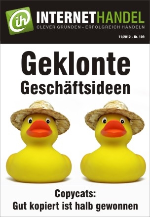 Da die Beschäftigung mit geklonten Geschäftsideen vor allem für Existenzgründer eine interessante Alternative ist, hat sich das Online-Magazin Internethandel.de in seiner aktuellen Ausgabe (Nr. 109, November 2012) ausführlich mit diesem Thema beschäftigt. Eingangs wird hier erklärt, worum es sich bei einer sogenannten Copycat eigentlich handelt. Anhand vieler bekannter Beispiele aus der Praxis wird der Leser mit den Eigenschaften und Möglichkeiten dieses Gründungsmodells vertraut gemacht und erfährt alles über die entscheidenden Vorteile kopierter Geschäftskonzepte. Anhand verlässlicher Kriterien erlernen interessierte Gründer, wie man eine Copycat zuverlässig erkennen kann und bekommen viele weitere Beispiele für geklonte Geschäftsideen. Im Hauptteil der Titelstory geht es um die Copycat als Gründungsmodell für angehende Unternehmer. In fünf einfachen Schritten wird hier vermittelt, wie man vorgehen sollte, wenn man selber einen erfolgreichen Business-Klon gründen will. Begleitet wird der Beitrag von vielen Tipps und Ratschlägen rund um die optimale Gründung.