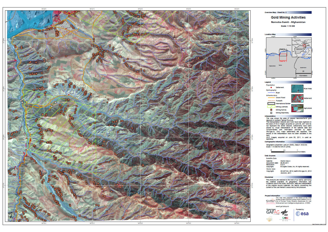 The SYMIN Project focuses specifically on five pilot areas in Afghanistan which are rich in coal, gold, gemstones as well as quarries. It is demonstrated that satellite-based remote sensing can be an efficient tool for area-wide mapping and monitoring of informal mining activities in remote, poorly accessible or security sensitive areas.