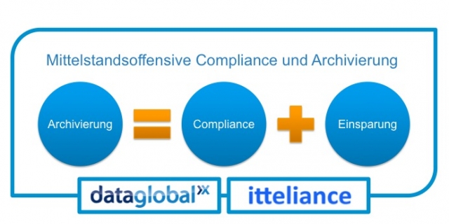 dataglobal und itteliance starten Mittelstandsinitiative für Compliance und Archivierung. Archivierung von SharePoint, Mails und Fileserver senkt Kosten und sorgt für gesetzeskonforme Ablage. Schrittweiser Ansatz und Best-Practice ermöglichen praxisorientieren Einstieg für den Mittelstand.