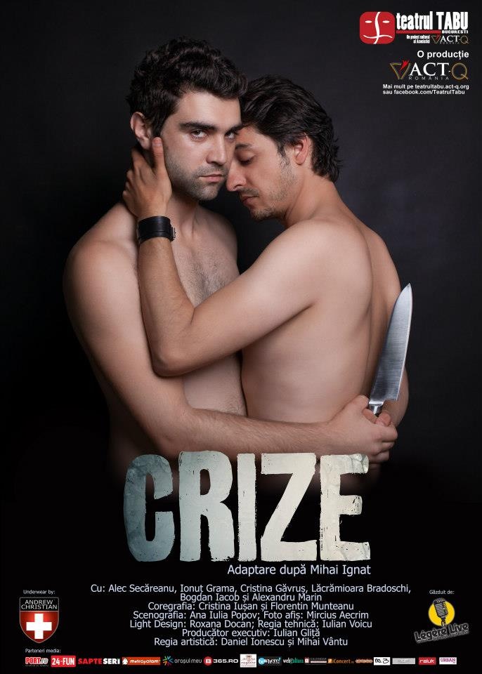 Der allgemeinse Alltagswahnsinn zweier Liebende, das Auf- und Ab im zermürbenden "Du oder Ich" zwischenmenschlicher Beziehung von Mann und Frau, "zwei die sowieso nicht zusammenpassen", hat jetzt in Bukarest in der Inszenierung von Daniel Ionescu und Mihai Vantu, den Leitern des Theater TABU in Bukarest, die längst notwendige, zwischenmenschliche Alternative gefunden. CRIZE (gay version) heißt es auf den Plakaten und Flyern zur November-Premiere und das ist nicht gerade einfach im Osten Europas, wo Homophobie noch zum Volkssport und radikale, handgreifliche Aggression unter den Augen der Obrigkeit zum Alltag gehören.