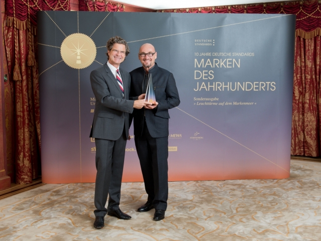 (IINews) - Herausgeber Dr. Florian Langenscheidt verlieh den Award an rund 250 erfolgreiche Marken Deutschlands. Anlässlich des 10-jährigen Jubiläums des verantwortlichen Verlages Deutsche Standards Editionen werden die Unternehmen in einer Sonderausgabe mit dem Titel Leuchttürme auf dem Markenmeer dokumentiert und porträtiert. Für den Titel Marken des Jahrhunderts werden jedes Jahr Produkte ausgewählt, die typischerweise für ihre ganze Gattung stehen: Tempo, das Taschentuch. Steiff, der Teddybär. Jochen Schweizer, das Erlebnis.