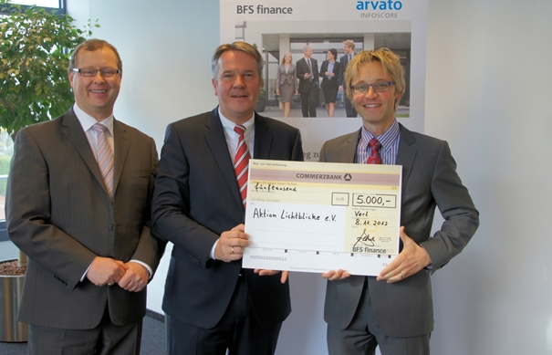Am Verler Standort fühlen sich die BFS finance, Tochtergesellschaft von arvato infoscore, und deren Mitarbeiter naturgemäß besonders der Region verbunden. Neben einer übergreifenden Spendenaktion des Gesamtunternehmens über alle Standorte hinweg ist es daher selbstverständlich, auch vor Ort eine soziale Einrichtung - in diesem Jahr die Aktion "Lichtblicke" - zu unterstützen.