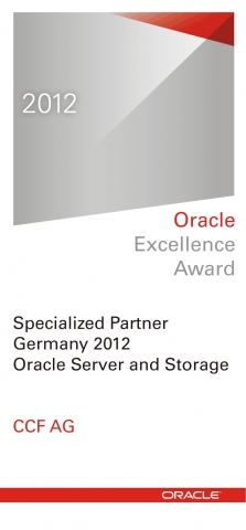 (IINews) - Griesheim, 27.11.2012: Die CCF AG, IT-Dienstleister für Infrastrukturthemen im Rechenzentrum, wurde im Rahmen der Oracle Excellence Awards 2012 zum Specialized Partner of the Year für Server- und Storage-Systeme in der Region Deutschland gewählt.