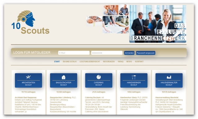 (IINews) - 10Scouts ist der Platz, an dem der Jäger seine Beute in geordneten Rudeln findet. Auch dann, wenn er nach verschiedenen Arten gleichzeitig sucht. Hier ist die Beute jedoch nicht das Tier. Nein, hier ist Business-Netzwerk für Business-Netzwerk nach verschiedenen Kernthemen zu finden. Solch ein Business-Netzwerk ist immer ein Unternehmer-Netzwerk mit einem eigenen Kernthemenbereich. Zehn solcher Themenbereiche hat 10Scouts als Basis übersichtlich zusammengefasst: ArchitektenScout, BaugutachterScout, CateringScout oder WerbeagenturScout - nur um ein paar der zehn zu nennen