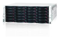 Durch die Möglichkeit max. 36 HDDs (3,5") auf 4 Höheneinheiten zu installieren, gewährleistet der ParX R4360s G4 eine maximale Festplattenkapazität von 144 TB. Diese hohe Anzahl von HDDs auf 4 HE lässt sich dadurch realisieren, dass zwölf der Festplatten von der Rückfront aus zugänglich sind. Prozessoren der neuesten Intel® Xeon® E5-2600 Serie beeindrucken durch ihre Leistungsfähigkeit. Die große Anzahl an optionalen Zusatzkarten - von Netzwerkkarten bis zu 10GbE oder FC-Controller - erlauben individuelle Anbindungsmöglichkeiten über iSCSI oder Fibre Channel.