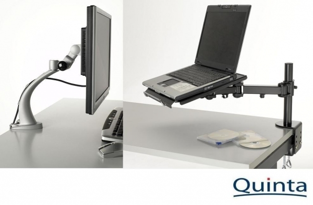 Jena, 30. November 2012 - Der Berufsalltag ohne PC ist heute undenkbar; bereitsüber die Hälfte aller Berufstätigen nutzen in ihrem Job regelmäßig einen PC. Die fehlerhafte Einstellung von Arbeitsgeräten ist nur eine Ursache von Beschwerden im Nacken- oder Rückenbereich sowie an den Augen. Um eine ergonomische Arbeitshaltung zu fördern, erweitert der Spezialdistributor Quinta GmbH ab sofort das bestehende Produktportfolio im Ergonomie-Bereich um innovative Laptopständer und Monitorarme.