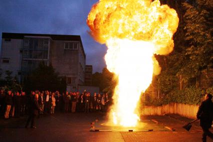 hohe Flamme zu erzeugen. Da diese Explosion dann meist von Wänden und