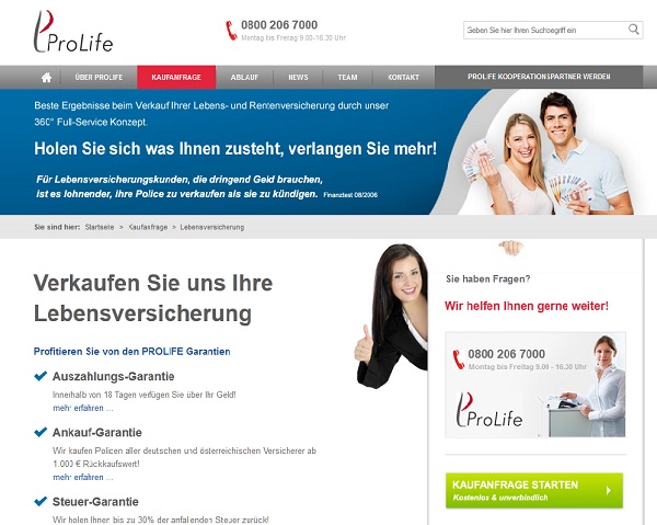 Die PROLIFE GmbH versteht sich als verbraucherorientiertes Unternehmen, rund um den Ankauf von Lebensversicherungen, Rentenversicherungen, sowie von Bausparverträgen und Unfallversicherungen mit Beitragsrückgewähr. Durch unsere Philosophie Mehrwerte schaffen, ermöglichen wir Ihnen eine sichere und schnelle Beschaffung der Gelder aus Ihren Verträgen. Diesen Mehrwert schaffen wir Ihnen durch eine rechtliche und versicherungsmathematische Nachbearbeitung durch unser fachkompetentes Team aus Profis der Versicherungswirtschaft und Fachanwälten
