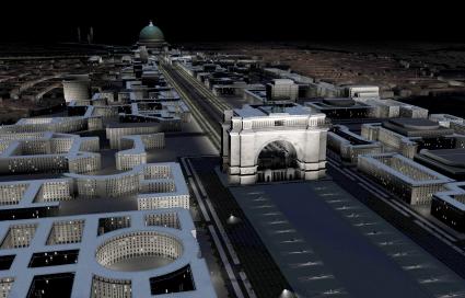 sowie eine kilometerlange Prunkachse mit Bahnhöfen, Ministerien und