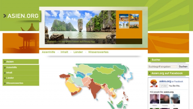 Das Informationsportal asien.org berichtet über Länder und Urlaubsziele in Asien. Regelmäßig werden Nachrichten, Interessantes und Menschen aus der Region vorgestellt. Das Ziel von asien.org ist es, damit eines der umfassendsten Portale über den größten Kontinent der Erde zu werden. Betrieben wird die Webseite von Shamrock3, der Internetagentur von Udo Zweckerl. Neben Internet-Marketing projektiert der erfahrene Internetdienstleister immer wieder eigene größere Projekte.