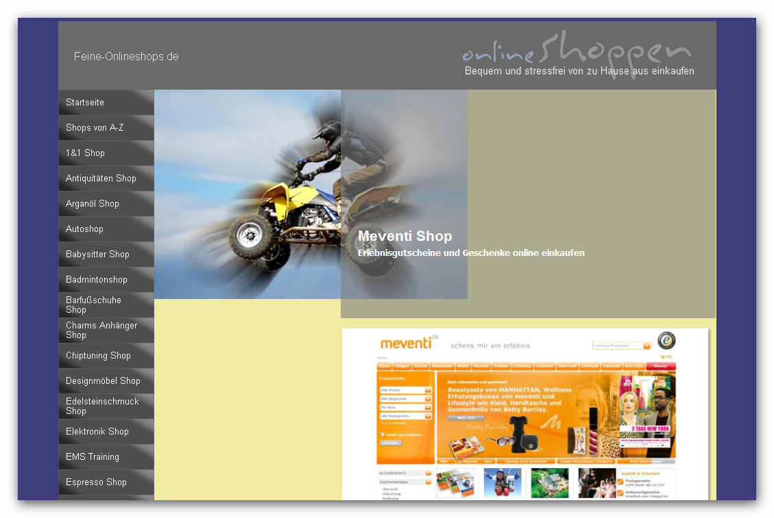 Der Onlineshop Mewenti bietet besondere Geschenkideen und ausgefallene Erlebnisgeschenke für jeden Anlass. Verschenken Sie unvergessliche Momente oder erfüllen Sie sich selber einen unerfüllten Wunsch. Erlebnisgeschenke werden immer beliebter. Sie bieten Action, Abenteuer und Erholung.
