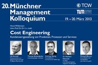 (PresseBox) - Vom 19.-20. März 2013 erfolgt das 20. Münchner Management Kolloquium. Unter dem diesjährigen Thema: "Cost Engineering - Kundenwertgestaltung von Produkten, Prozessen und Services" stellen Führungskräfte aus über 70 Unternehmen ihre Lösungsansätze und Erfolgsfaktoren vor.