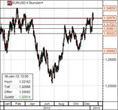 (PresseBox) - Nach dem Höhenflug aufgrund der Aussagen Draghis, die den Euro in der Spitze auf die 1,34 katapultierten, konsolidiert EURUSD seine Gewinne aus, ohne jedoch unter massiven Verkaufsdruck zu geraten. Derzeit pendelt der Euro um den ehemaligen Widerstand bei 1,33, ohne bislang eine klare Richtungsentscheidung anzudeuten. Für kurzfristige Schwäche sorgten die Aussagen des scheidenden Eurogruppen-Chefs Juncker, wonach der Eurokurs "gefährlich" hoch sei, sowie die Senkung des Ausblicks für die globale Wirtschaft durch die Weltbank. Die Gemeinschaftswährung scheint derzeit in der Spanne zwischen 1,3260 und 1,330 gefangen zu sein.