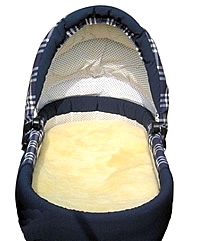 Eine Auflage aus kuscheligem Lammfell sorgt nicht nur im Kinderwagen, sondern auch in der Wohnung zu jeder Jahreszeit für angenehme Wärme.