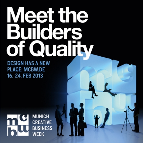 Vom 16. bis 24. Februar 2013 steht ganz München bei der MCBW im Zeichen von Design und Kreativität. Weitere Informationen zur MCBW und den Themenschwerpunkten "Design: social and cultural needs", "Design: inspired by technology" und "Design: sustain your brand" unter: www.mcbw.de