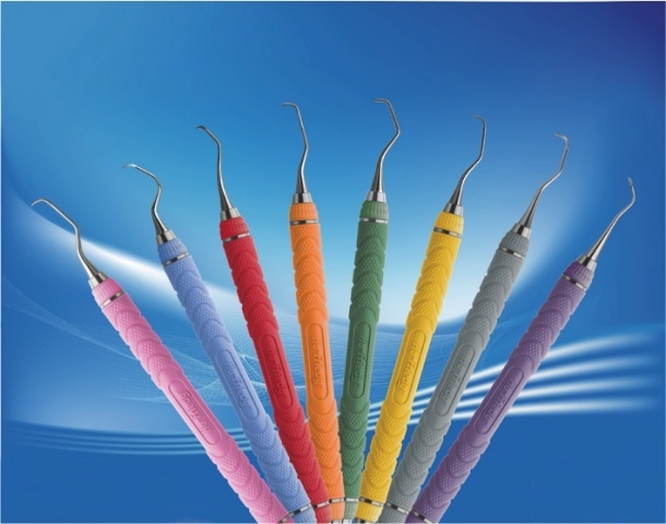Bei der Parodontitis-Prophylaxe spielt die Entfernung von Zahnstein eine wichtige Rolle. Die Produktlinie Resin 8 Colours von Hu-Friedy stellt dem Behandler hierfür insgesamt 80 Scaler-Modelle zur Verfügung. Durch acht verschiedene Leuchtfarben werden die Instrumente ihrem jeweiligen Einsatzgebiet im Mundraum zugeordnet, was die Arbeitseffizienz erhöht. Dank der EverEdge® Technologie von Hu-Friedy, einer revolutionären Edelstahl-Legierung, stumpfen die Arbeitsenden weniger schnell ab als bei herkömmlichen Instrumenten. Auch Ermüdungserscheinungen auf Behandlerseite wird vorgebeugt: Die ergonomisch geformten Kunststoff-Griffe der Scaler ermöglichen komfortables Arbeiten durch hohe Rotationskontrolle und sicheren Halt.
