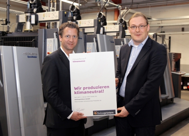 (IINews) - Neustadt an der Aisch / München - Die Onlineprinters GmbH, eine der größten Onlinedruckereien in Europa, bietet ihren Kunden in Kooperation mit dem Klimaschutzspezialisten ClimatePartner die Möglichkeit, ihre Printprodukte klimaneutral zu drucken. Hierfür werden die CO2-Emissionen jedes einzelnen Druckauftrags automatisch ermittelt und auf Wunsch durch die Unterstützung von international anerkannten Klimaschutzprojekten kompensiert. Dieser zertifizierte Service (TÜV Austria) ist seit Jahreswechsel 2012-2013 für die Kunden der Onlinedruckerei unter der deutschen Marke diedruckerei.de und der internationalen Marke Onlineprinters in 30 Ländern Europas verfügbar.