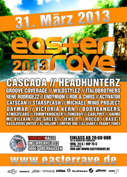 "Ostern wird mit dem Easter Rave am 31. März 2013 in der Turbinenhalle in Oberhausen zelebriert"