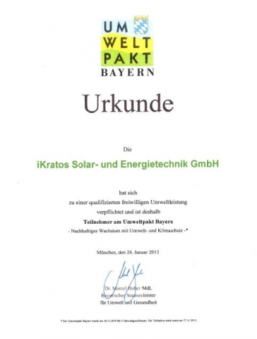 "iKratos erhält Urkunde Umweltpakt Bayern"