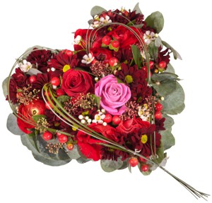 Morgen, am 14. Februar 2013, ist Valentinstag! Vergessen? Kein Problem, Fleurop ist gerne Retter in der Liebesnot, denn Blumen sind vor Süßigkeiten und Schmuck das beliebteste Geschenk zum Valentinstag. Noch am Valentinstag selbst werden bis 15.00 Uhr in mehr als 7.000 Fleurop-Fachgeschäften in ganz Deutschland, über das Fleurop-Service-Telefon 0180 - 411 42 11 (20 Ct./Anruf aus dem dt. Festnetz, ggf. abweichender Mobilfunktarif) oder auf www.fleurop.de die blumigen Aufträge von Verliebten entgegengenommen und garantiert noch am selben Tag zusammen mit einer persönlichen Liebesbotschaft des Absender an den Empfänger überreicht. Neben der blitzschnellen Lieferung bietet Fleurop eine besonders große Auswahl an Blumensträußen und Gestecken in allen Preisklassen. Besonders beliebt in diesem Jahr: florale Valentinsherzen in verschiedenen Größen und Farben.