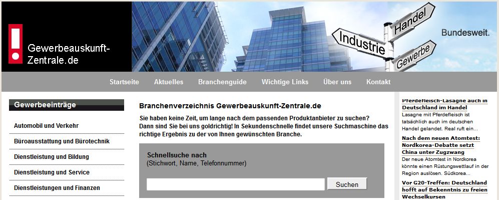 Das Branchenverzeichnis der Gewerbeauskunft-Zentrale wurde technisch auf den neuesten Stand gebracht und dadurch noch freundlicher für die Anwender gestaltet. Rasante Zugriffe ohne lange Wartezeiten sind die Folge. Für Gewerbetreibende bietet die Branchen-Datenbank somit eine ausgezeichnete Gelegenheit schnell und ohne großen Aufwand neue Kunden zu generieren. Die Gewerbeausknuft-Zentrale bringt dadurch Unternehmer und User zusammen und erzielt für alle Beteiligten das bestmögliche Ergebnis.