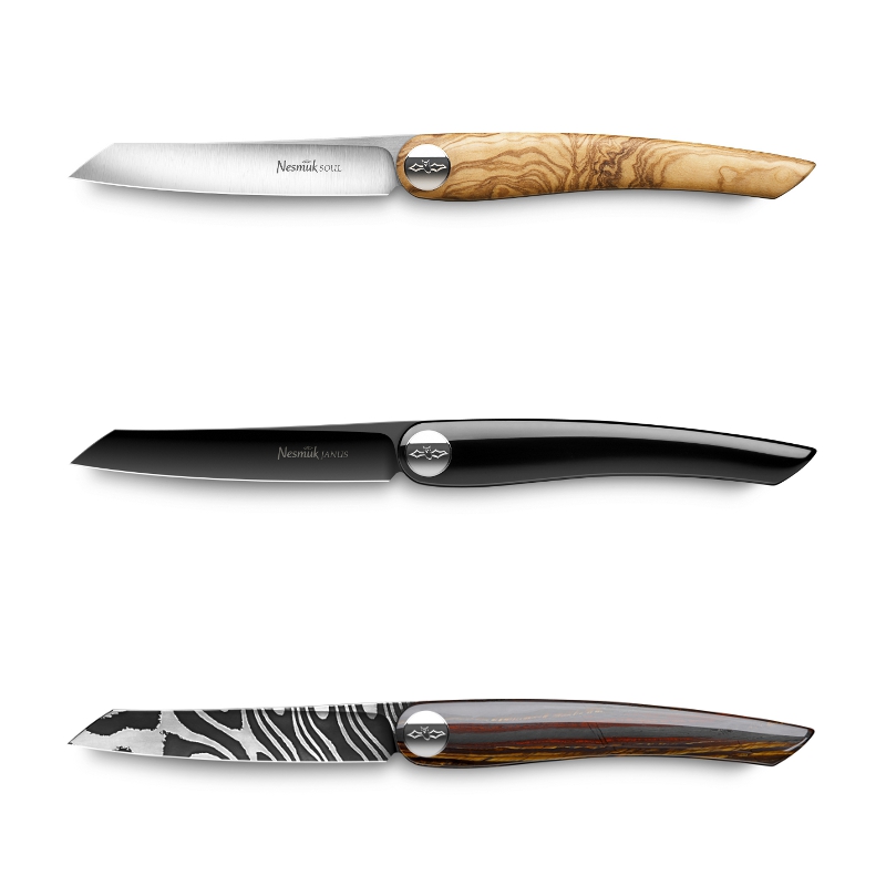 (IINews) - Die Modelle Soul, Janus und Exklusiv sind Taschen-, Klapp- und Steakmesser in einem und stehen für vollendete Schmiedekunst made in Germany. Messer ohne Niet und Schrauben, die wie ein edler Füllfederhalter oder eine besondere Uhr schnell zum ständigen Begleiter avancieren. Puristisches Design, hochwertige Materialien, handgefertigte oder von Hand veredelte Klingen sowie eine faszinierende Haptik drücken dabei höchste Wertschätzung aus – für den anspruchsvollen Benutzer ebenso wie für ein gutes Stück Fleisch. Dieter Müller, Eckart Witzigmann und andere bekannte Sterneköche schwören längst auf die handgeschmiedeten und mehrfach ausgezeichneten Nesmuk Messer. Das Magazin Focus zählt Nesmuk bereits zur Top Five der deutschen Trendsetter-Manufakturen mit dem größten Potential.