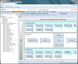 Übersichtliche Prozesslandkarten machen darüber hinaus die mit dem Prozess verbundenen Zusammenhänge und Abhängigkeiten deutlich. Im Ergebnis wird der gesamte Prozess im Computer abgebildet, und mit anderen Prozessen vernetzt. Prozessbeschreibungen sind jederzeit abrufbar und die QM-Dokumentation ist sichergestellt.