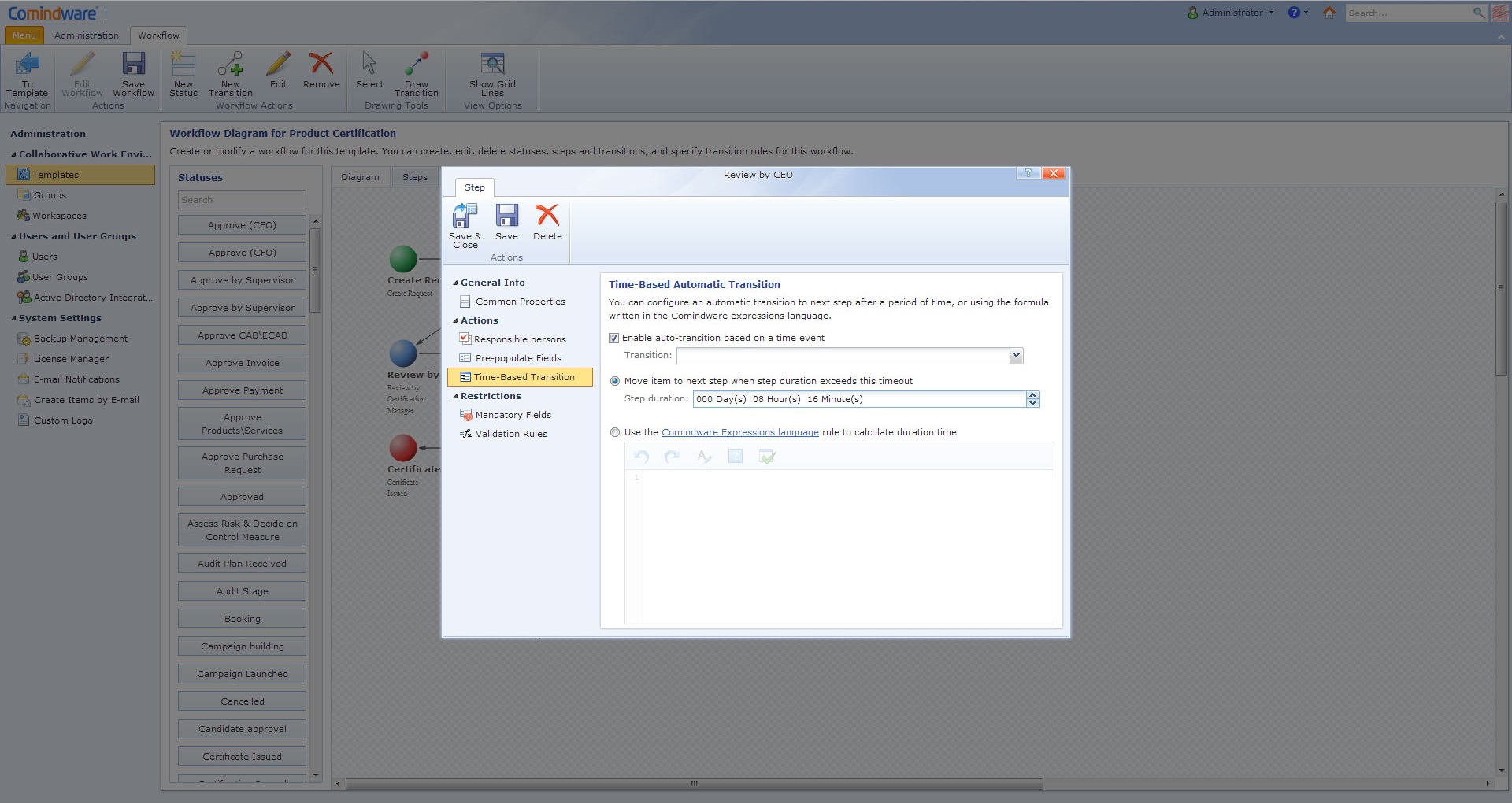 Zeitgemäße Arbeitsorganisation zielt schlussendlich darauf ab, die täglichen Aufgaben der Mitarbeiter ohne organisatorischen Overhead zu erledigen. Daher fokussiert Comindware auf die Interaktion von Mitarbeitern, Kollaboration im Team sowie effektive Information und Kommunikation. Workflowprozesse eines Unternehmens werden per Mausklicks und ohne Programmierung im universellen Workflow-Builder eingerichtet. Diese standardisiert wiederkehrenden Arbeitsabläufe sowie neue Projekte sind aufgrund der ElasticData Graphen-Datenbank auch im Livebetrieb anpassbar.