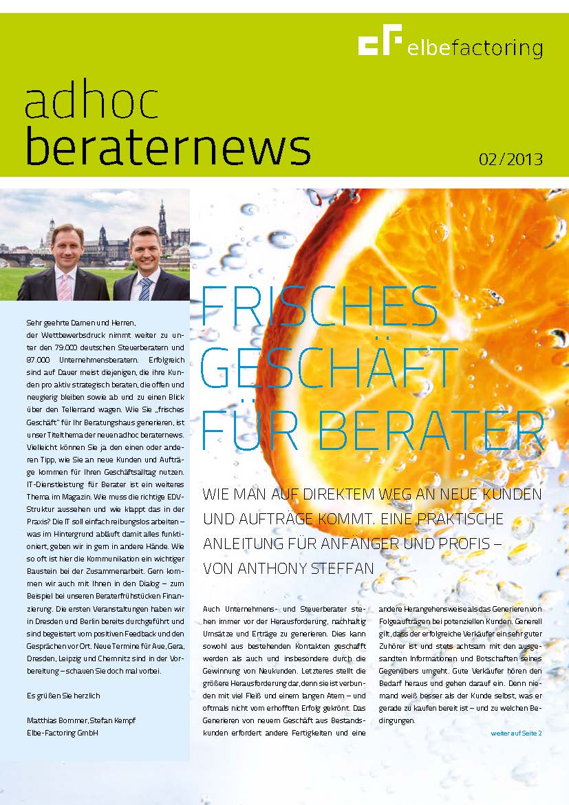 "Elbe-Factoring gibt Magazin adhoc beraternews heraus"