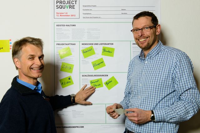 Die Idee zum Project Square stammt von den drei Buchautoren und Projektmanagern Roger Dannenhauer, Torsten J. Koerting und Michael Merkwitza - und ist ein Ergebnis ihres kollaborativen Buchprojekts "TurnAround. Wenn Projekte kopfstehen und klassisches Projektmanagement versagt" Das Buch wird im Juni 2013 erscheinen und beschäftigt sich mit allen Aspekten von TurnAround-Projekten. Speziell für Projekte in Schieflage suchten die Autoren eine Möglichkeit, alle Bestandteile eines Projektes möglichst einfach und vollständig visualisieren zu können. In Gemeinschaftsarbeit mit anderen Projektmanagern zu dem Buch mündete dieser Wunsch in der Entwicklung des Projekt Squares.