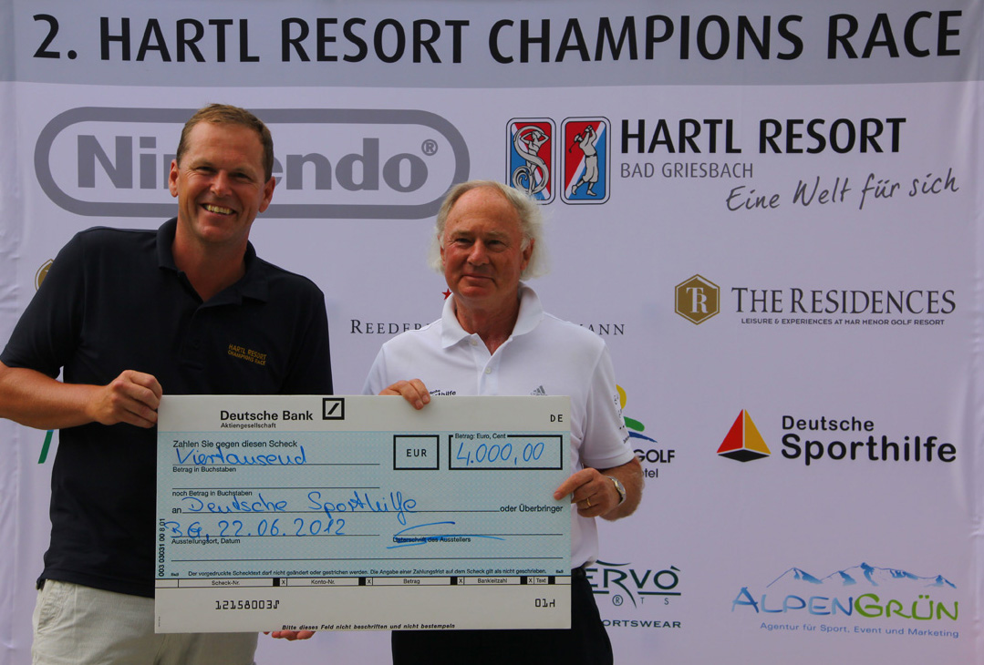 Für das Champions Race gibt es zudem ein attraktives Arrangement im Hartl Resort. Es umfasst zwei Übernachtungen mit reichhaltigem Frühstücksbüffet, Welcome Drink inklusive Turnierteilnahme mit Startgeschenk, Greenfees und Halfway-Verpflegung sowie der Teilnahme an den beiden Abendveranstaltungen. Der Preis pro Person im Doppelzimmer beträgt im Gutshof ab 249 Euro, im Hartl Resort Hotel ab 379 Euro. Weitere Informationen und Reservierung unter der kostenlosen Hotline 00800/12 99 12 99 oder reservierung(at)hartl.de, www.hartl.de/champions