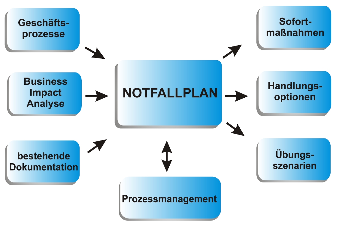Laut dem BITKOM haben 39% der Unternehmen bereits konkrete Angriffe auf die eigene Unternehmens-IT erlebt und 33% Erfahrungen mit Datenverlusten gemacht. Auf Datenverluste oder Angriffe auf die IT-Systeme können der BITKOM Befragung zufolge 52% aller Betriebe nicht adäquat reagieren, da entsprechende Notfallpläne bislang fehlen. "Dabei ist der teilweise oder vollständige Daten- oder IT-Ausfall nur ein Krisenszenario, das die Wirtschaftsfähigkeit eines Unternehmens gefährdet. Präventive Maßnahmen und die Etablierung eines Notfallmanagements bzw. eines Desaster Recovery Konzeptes sind heute wichtiger denn je, da heute die betriebswirtschaftlichen Abläufe zum größten Teil über entsprechende IT-Systeme abgewickelt werden. Daher können Ausfälle in der IT heute akut existenzbedrohende Auswirkungen haben. Neben den Unternehmen sind daher auch Wirtschaftsprüfer heute vermehrt gefordert, entsprechende Risk Management Konzepte zur Sicherung der Wirtschaftstätigkeit einzuführen", gibt Jochen Möller, Geschäftsführer der mIT solutions GmbH, zu bedenken. Der BITKOM empfiehlt daher Unternehmen konkret, auf Basis einer IT-Prozess- und Risikoanalyse kritische Risikofaktoren sowie deren Eintrittswahrscheinlichkeiten zu ermitteln und einen Notfallplan zu entwickeln, um im Schadensfall ein effektives Informationsmanagement zu gewährleisten und die Auswirkungen auf den laufenden Geschäftsbetrieb zu minimieren. Ein Notfallplan listet beispielsweise die wichtigsten Geschäftsprozesse des Unternehmens auf und beschreibt, was im Schadensfall zu tun und wer zu informieren ist.