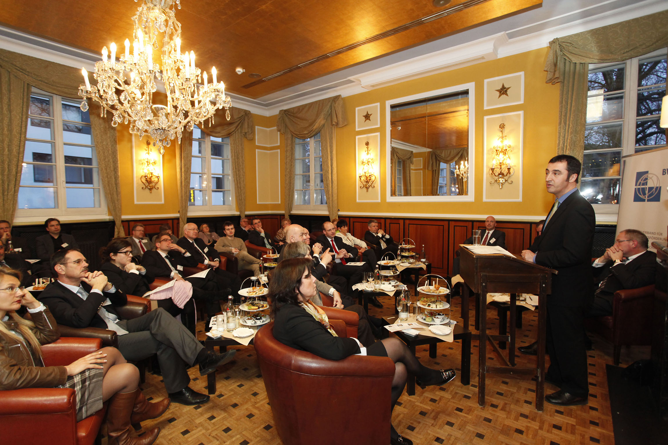 Im Kaminzimmer der Kölner Wolkenburg begrüßte Dr. Guido Krüger, Präsident des BWA-Landesverbands NRW die rund 50 Gäste. Er stellte fest, dass eine Vereinfachung in der Anerkennung von Berufsabschlüssen ausländischer Fachkräfte in Deutschland nötig sei. Richard Boulter, Geschäftsführer der Eaton Industries GmbH, der als Brite seit vielen Jahren in Deutschland lebt und arbeitet, gab eine Außenansicht auf die Potenziale Deutschlands und NRWs, das er als schlafenden Riesen darstellte.