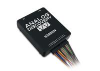 Das Analog Discovery ist ein USB-betriebenes Test- und Messgerät, welches ein Zweikanaloszilloskop, einen zweikanaligen Funktionsgenerator sowie einen 16-kanaligen Logikanalysator und viele weitere Instrumente in einem kostengünstigen Gerät miteinander vereint.