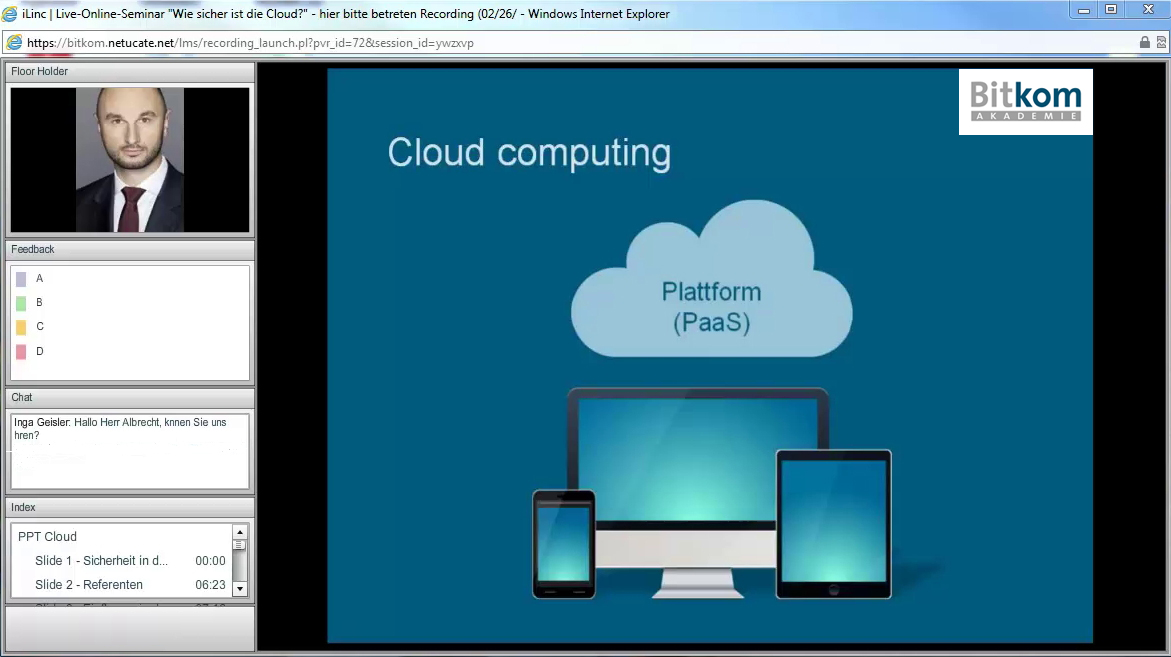 (IINews) - Die von der BITKOM Akademie in Zusammenarbeit mit dem Bundesministerium für Wirtschaft und Technologie (BMWi) angebotenen, kostenlosen Online-Seminare zur IT-Sicherheit stoßen auf große Zustimmung. Die Seminarreihe verfolgt das Ziel insbesondere KMUs für IT-Risiken und -Bedrohungen zu sensibilisieren. Die rund 230 Teilnehmer seit Dezember 2012 beurteilen die von Experten aus der Praxis geleiteten Seminare äußerst positiv. 85 Prozent der Teilnehmer, die sich an der Evaluation der Seminare beteiligt haben, bewerteten die Leistung der Referenten mit "Gut" oder "Sehr Gut". Mit den vermittelten Inhalten und der technischen Umsetzung sind mehr als 80 Prozent der Teilnehmer zufrieden bzw. sehr zufrieden.