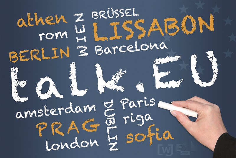 Das Projekt talk.EU der WJ Bayern soll das Thema Europa praxisnah an die Schulen bringen. Toni Gaubitz, Ressort Bildung, hat das Konzept zusammen mit Wolfgang Meyer und Tim Schlotthauer entwickelt. Die Initiative kam vom Leiter der Europäischen Kommission in München, Dr. Henning Arp.