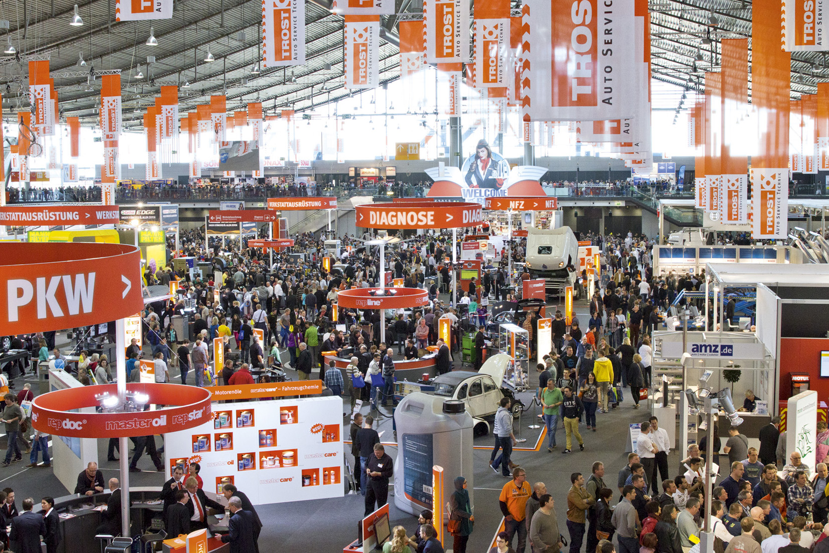 Im Bereich Pkw präsentierten sich unter anderem die TROST-Werkstattkonzepte inklusive ihrer Leistungen: von der Reparatur-Hotline repline über Werkstattersatzwagen bis hin zur Reparatur-Vermarktung im Internet. Die Online-Werbeplattform repcom wurde um neue Funktionen, wie zum Beispiel zur Integration von QR-Codes oder zur vereinfachten Auswahl von Postverteilungsgebieten, erweitert.