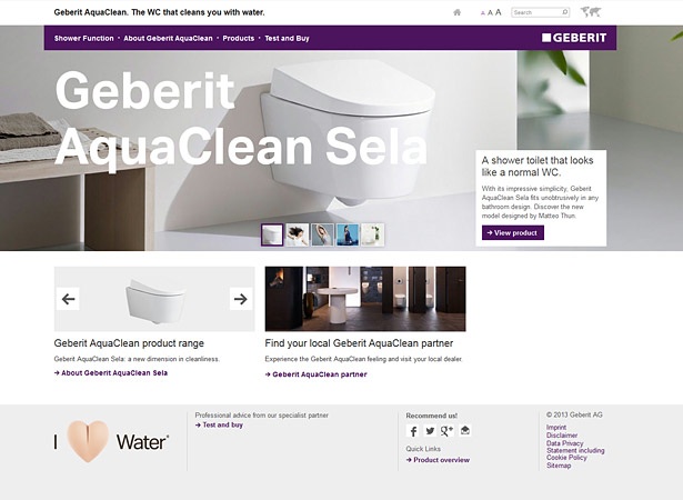 Das Unternehmen Geberit - ein globaler Anbieter in der Sanitärtechnik - beauftragt SF eBusiness, für den Bereich Dusch-WC eine neue internationale mehrsprachige Kampagnenwebsite für 12 Märkte und die internationale Website geberit-aquaclean.com zu entwickeln. Bei Geberit AquaClean handelt es sich um ein innovatives WC mit integrierter Duschfunktion.