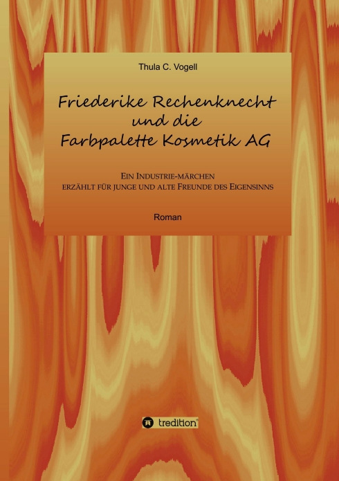 "Friederike Rechenknecht" von Thula C. Vogell ist ab sofort im tredition Verlag oder alternativ unter der ISBN 978-3-8495-3770-8 zu bestellen. Der tredition Verlag hat es sich zum wichtigsten Ziel gesetzt, jungen und unbekannten Autoren die Veröffentlichung eigener Bücher zu ermöglichen aber auch Verlagen und Verlegern eine Kooperation anzubieten. tredition veröffentlicht Bücher in allen Medientypen, vertreibt im gesamten Buchhandel und vermarktet Bücher seit Oktober 2012 auch aktiv.
