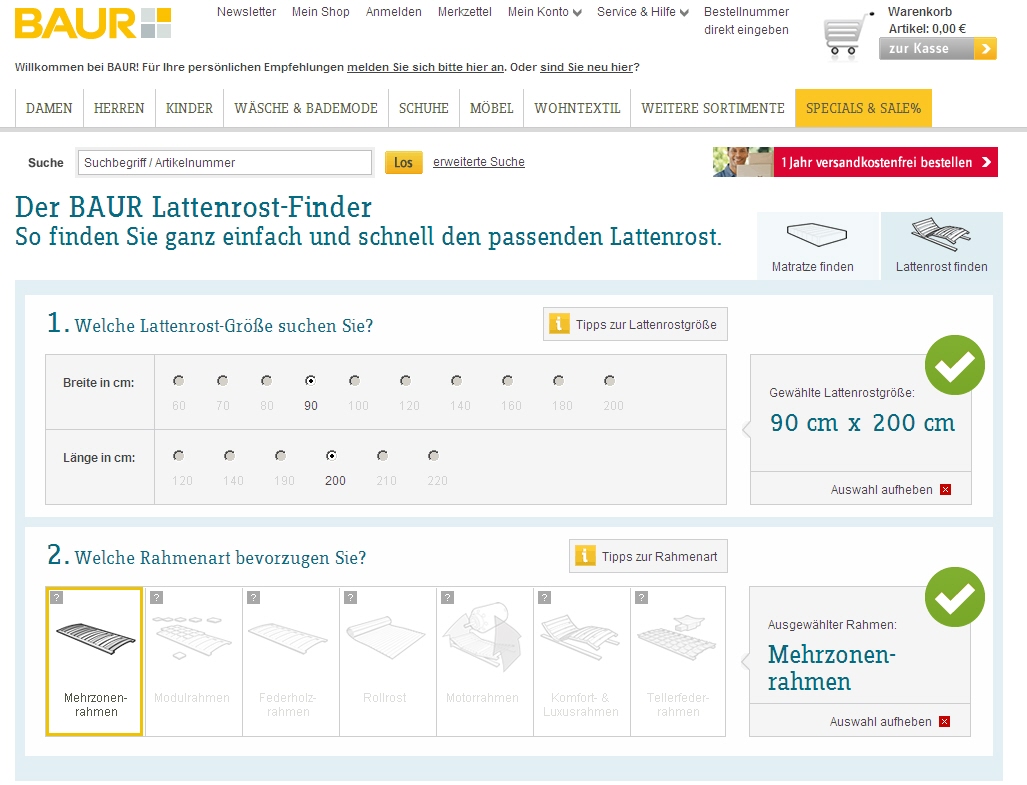 www.baur.de startet neuartigen Matratzen- und Lattenrost-Finder