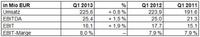 Das EBIT der ersten drei Monate 2013 beträgt 18,1 Mio EUR. Im Vergleich mit dem operativen Ergebnis des 1. Quartals 2012 in Höhe von 17,7 Mio EUR bedeutet dies eine Steigerung um 1,9 Prozent, zu der maßgeblich die Regionen außerhalb Europas und die Business Area Marine beigetragen haben. Die EBIT-Marge konnte somit gegenüber dem Vorjahr leicht auf 8,0 Prozent erhöht werden. Das Konzernergebnis liegt mit 11,0 Mio EUR ebenfalls über dem Vergleichswert des Vorjahres von 10,7 Mio EUR.
