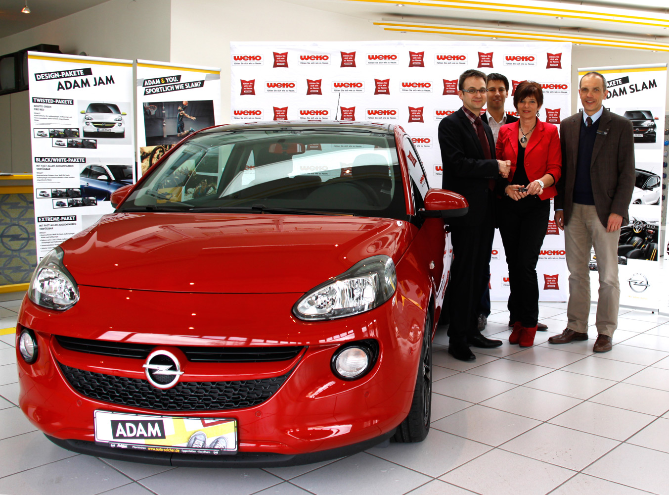 Preise im Gesamtwert von 65.000 ? wurden verlost, darunter viele Warengutscheine und als Hauptgewinn ein neuer Opel ADAM. Dieser wurde von Frau Renate Stütz aus Pfarrkirchen erspielt, sie erhielt den goldenen Hauptpreis-Chip. Die Gewinnerin konnte ihr Glück bei der Übergabe des Fahrzeugs am 11. April kaum fassen. WEKO Wohnen Geschäftsleiter Martin Scheuer überreichte die Schlüssel beim Autohaus Solcher in Pfarrkirchen.