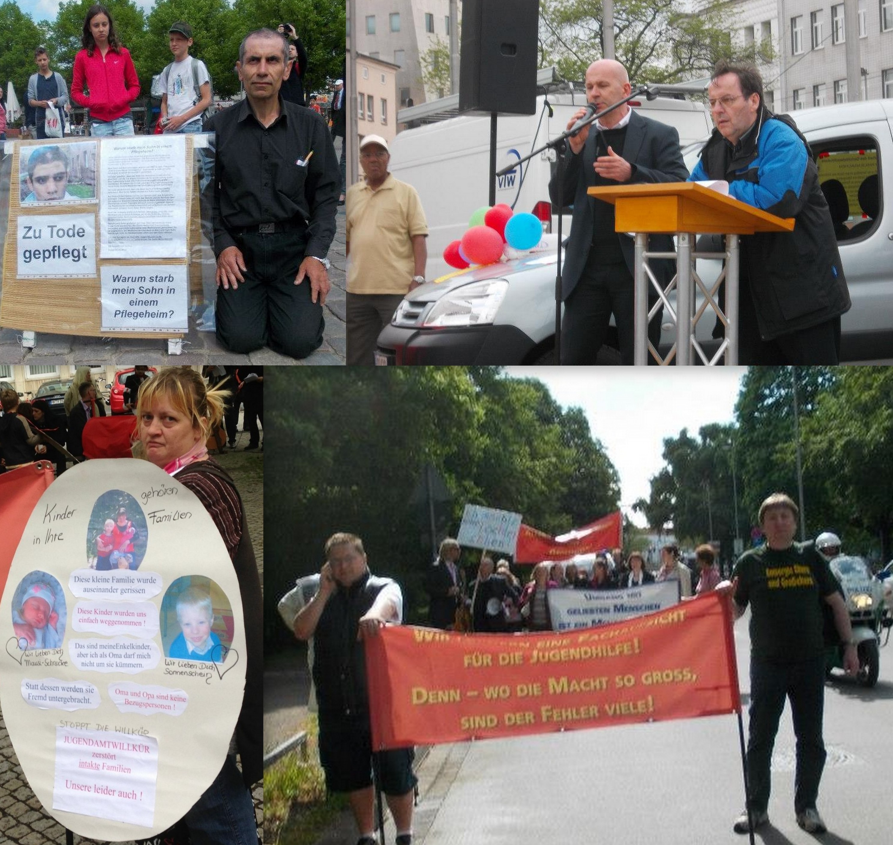"Die Demonstranten wollen mit ihren Protesten "genau das" in die Öffentlichkeit bringen, was woanders keinen Platz zu finden scheint". Seit der Verabschiedung des neuen Kinderschutzgesetz vom 03.01.2012 greifen Jugendämter und Familiengerichte noch härter ein als zuvor. Der Kern des Gesetzes soll der Ausbau der frühen Hilfen für Familien beinhalten, dabei ist die Vorgehensweise die manche Jugendämter und Familiengerichte seit der Verabschiedung des neuen Kinderschutzgesetz an den Tag legen recht fragwürdig, wenn nicht beängstigend und vernichtend für Kinder, Eltern und Großeltern. "Sollte der deutsche Staat jedoch nicht humanitär und demokratisch ausgerichtet sein - welcher dem Willen des Volkes folgt"? Daher heißt es in allen Urteilen mehr oder minder "IM NAMEN DES VOLKES". Fraglich ist, was die jährlich weit mehr als 200 000 Eltern und Kindern dazu sagen, die durch unrechtmäßige Inobhutnahmen geschädigt werden?