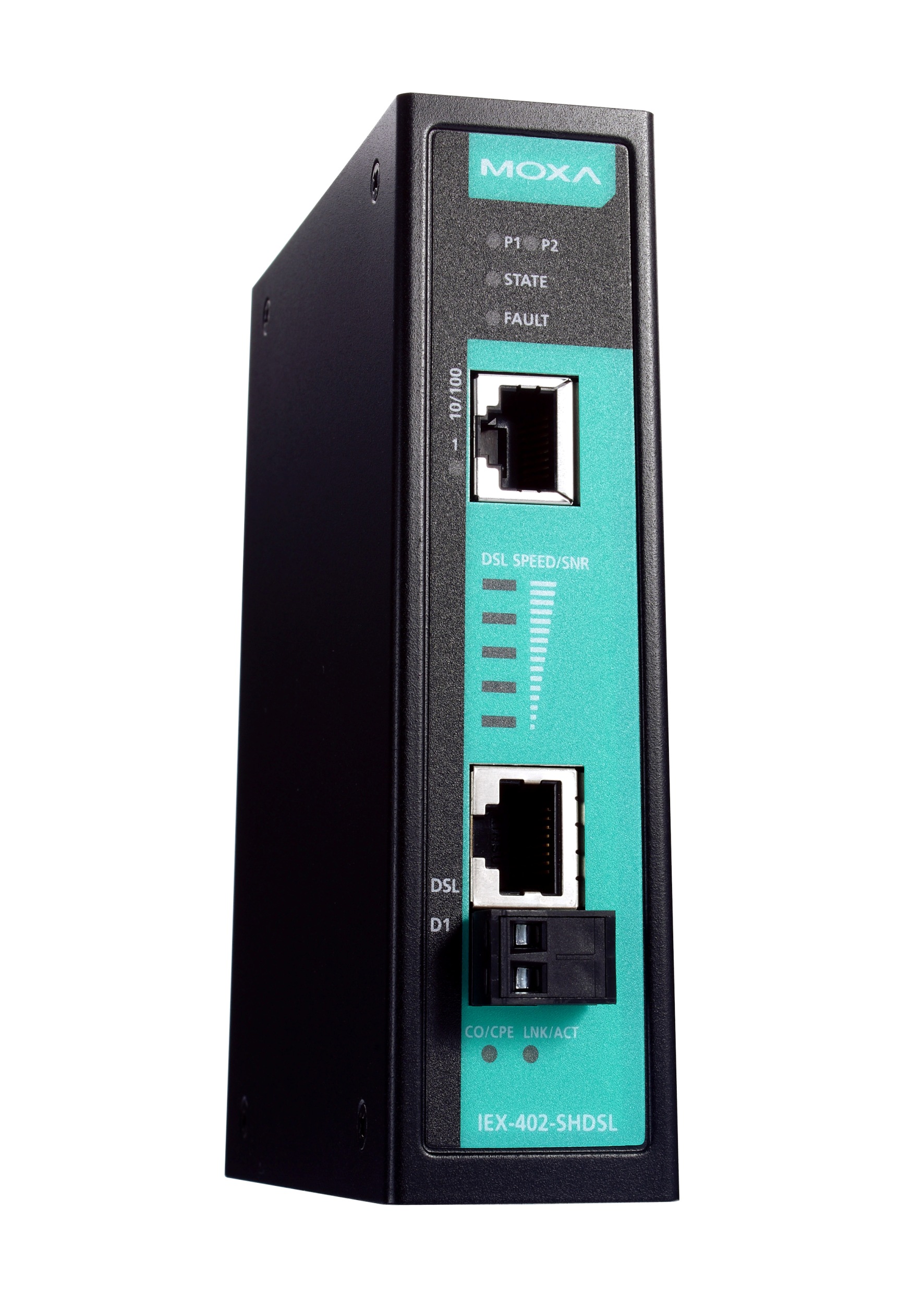 Moxas neue IEX-Serie industrieller Managed DSL-Ethernet-Extender umfasst die Serien IEX-402-SHDSL und IEX-402-VDSL2, die mit G.SHDSL oder VDSL2 Point-zu-Point-Ethernet-Erweiterungüber bestehende Kupferleitungen ermöglichen.